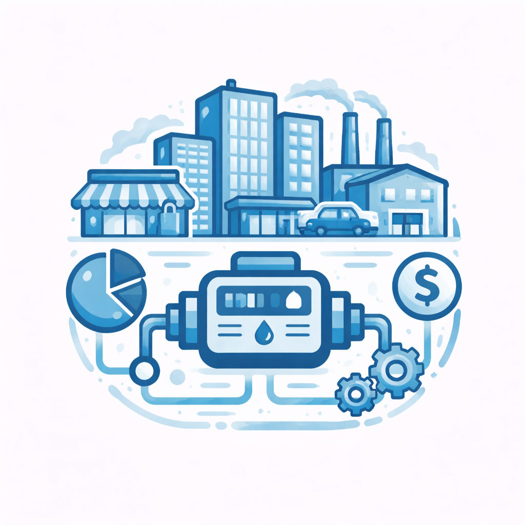 Water availability, usage monitoring, and cost allocation for offices, malls, and business parks.